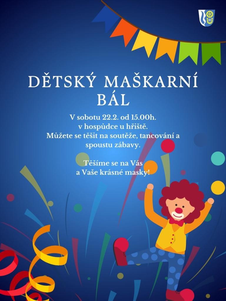 V sobotu 22.2. od 15,00h v hospůdce u hřiště se bude konat dětský maškarní bál.