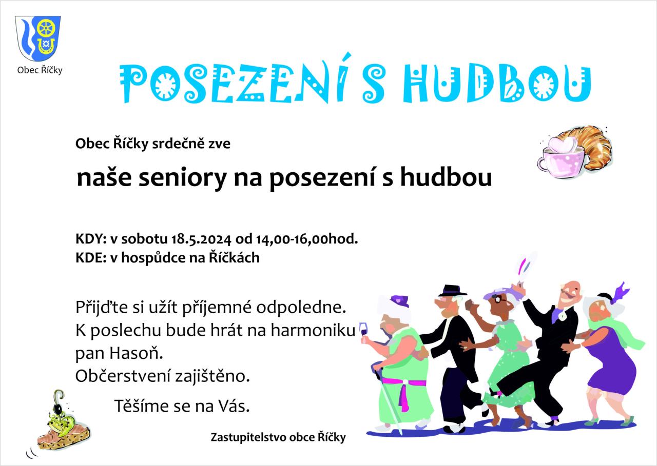 Obec Říčky srdečně zve naše seniory na posezení s hudbou.