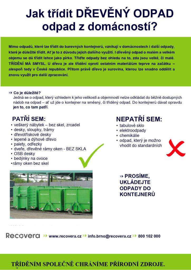 Tentokrát budou přistaveny 2 kontejnery - jeden na klasický velkoobjemový odpad a druhý na dřevěný odpad - nábytek, rámy oken.